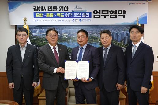김해시는 향토기업 ㈜대저건설의 자회사인 ㈜대저해운이 운영 중인 포항~울릉도~독도 여객 노선의 운임을 김해시민을 대상으로 할인하는 업무협약을 체결했다고 31일 밝혔다.