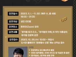 용인특례시 중앙도서관은 시민들의 인문 소양을 넓히기 위해 운영하는 ‘저녁밥 인문학’ 프로그램으로 11월 한 달간 뮤지컬 전문가 이동섭 씨를 초빙해 특강을 연다.