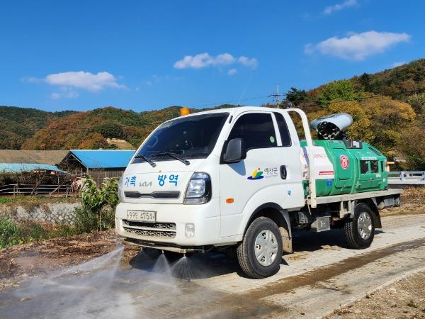 군은 재난형 가축전염병 차단을 위해 지난 10월 1일부터 가축방역상황실을 설치 및 운영 중이며, 축산차량 소독 거점소독시설 2개소, 대규모 농장통제초소 3개소를 확대 설치하고 군 방역차 2대, 축협공동방제단 6대 등 방역 차량을 통해 농장 진입로에 대한 순회 소독을 실시하고 있다.
