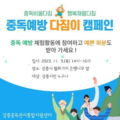 강릉중독관리통합지원센터의 주관으로 개최되는 이번 캠페인은 강원특별자치도광역정신건강복지센터와 대학생예방활동단 ‘영프로’가 함께한다.