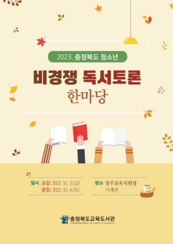 충청북도교육청 직속기관 교육도서관(관장 이종수)이 3일과 4일, 양 일간 책으로 소통하고 마음을 성장하는 학생 주도의 독서토론 문화 조성을 위해 '2023. 충북 청소년 비경쟁 독서토론 한마당'을 개최한다.
