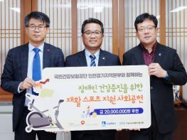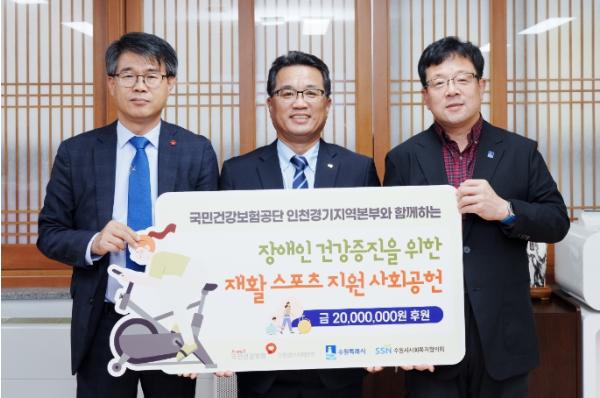 국민건강보험공단 인천경기지역본부가 1일 “장애인 자전거 구입에 사용해 달라”며 수원시 사회복지협의회에 2000만 원을 기탁했다.