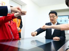 스마트 체험존에는 어르신의 인지능력 향상과 여가생활 증진을 위한 스마트 놀이기기인 해피테이블이 설치됐다. 해피테이블은 어르신뿐만 아니라 남녀노소 누구나 4명이 동시에 50여 종의 콘텐츠를 즐길 수 있다.