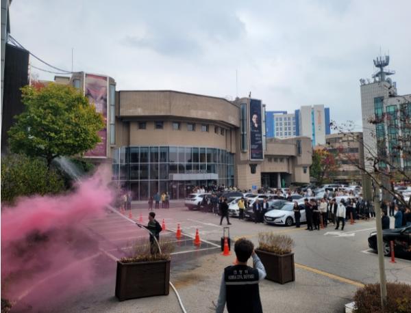 훈련은 ▲화재신고 ▲피난유도 ▲긴급대피 ▲초기 화재진압 순으로 실시됐다. 화재 진압 후에는 고양시 문예회관에서 소화전 및 소화기 사용법 교육과 심폐소생술(CPR) 등 응급처치 교육이 진행됐다.