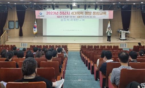 하남시가 시청 전 직원 대상 4대 폭력(성희롱·성폭력·성매매·가정폭력) 예방 및 성인지 교육을 진행해 여성·가족친화도시 구축에 발 벗고 나섰다.