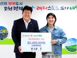 VIP.T 운동센터는 지난 1일 태백시 저소득층을 위해 사용해달라며 성금 100만 원을 태백시청에 전달했다.