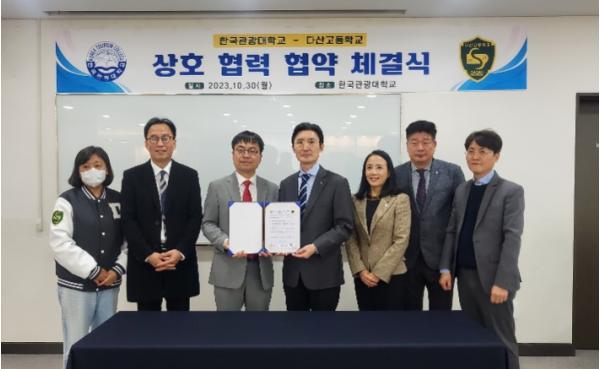 다산고등학교(교장 최우성)가 지난 30일 한국관광대학교와 인적ㆍ물적 교류에 관한 상호 협력 협약을 체결했다.