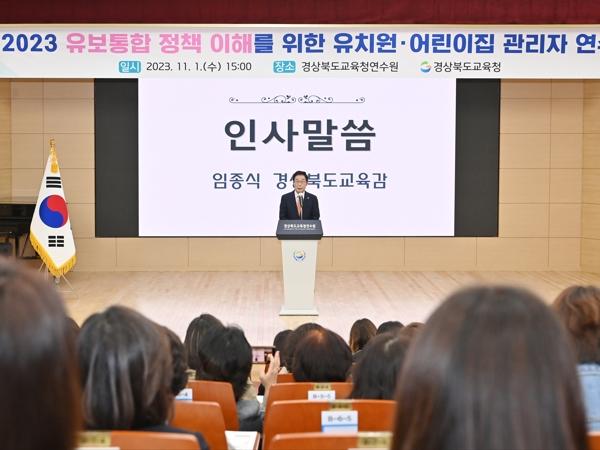 경북교육청은 지난 1일 경상북도교육청연수원에서 도내 유치원·어린이집 원장, 원감 500여 명을 대상으로‘유보통합 정책 이해를 위한 유치원·어린이집 관리자 연수’를 실시했다고 밝혔다.