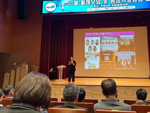 이번 교육은 디앤알 CS사업본부 백주희 이사를 초빙해 ‘민원서비스, 더하기 하나 프로의 서비스 기술’을 주제로 민원인 응대 시 민원인을 대하는 태도 개선과 서비스 향상 방안, 민원인과 감정 형성을 위한 접근법 등을 안내했다.