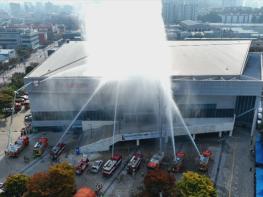 이번 긴급구조종합훈련은 폭발에 의한 다중이용시설 화재 및 붕괴 등 복합 재난사고 상황을 가정해 실시했다.