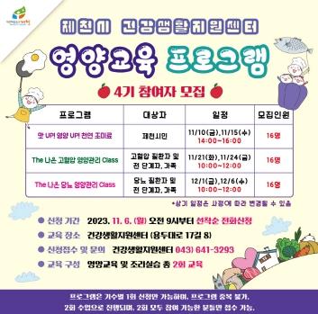 제천시보건소 건강생활지원센터는 11월, 12월 ‘4기 영양교육 프로그램’을 운영하고 참가자를 모집한다.