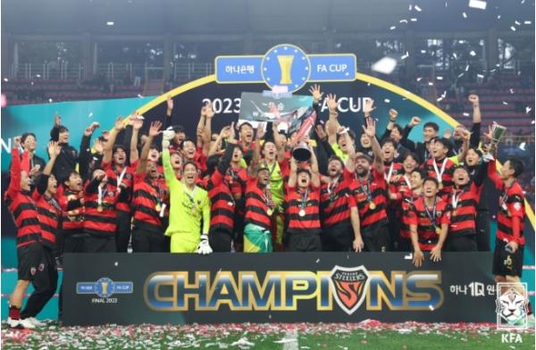 김기동 감독이 이끄는 포항은 4일 포항 스틸야드에서 열린 대회 결승전에서 전북을 4-2로 꺾고 정상에 섰다. 이로써 포항은 2013년 이후 10년 만에 대회 우승을 차지하는 동시에 통산 5회 우승(1996, 2008, 2012, 2013, 2023)으로 전북, 수원과 함께 최다우승 타이로 어깨를 나란히 했다. 이날 결승골을 기록한 김종우가 대회 최우수선수(MVP)로 뽑혔다.
