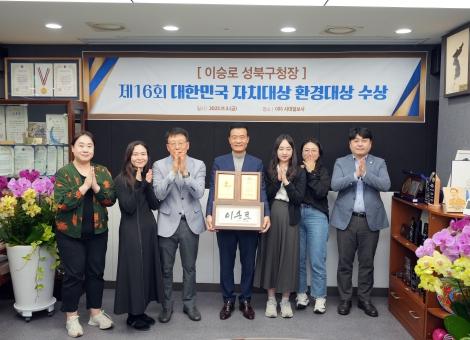이승로 성북구청장은 “앞으로도 주민의 목소리가 정책이 되는 생활밀착형 행정서비스를 제공하기 위해 보다 노력할 것이며, 환경 보존에 앞장서는 성북구가 되겠다”고 수상소감을 밝혔다.