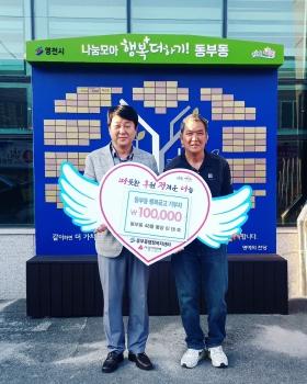 지난 3일 영천시 동부동행정복지센터를 방문해 어려운 복지사각지대 이웃에 사용해 달라며 이태호 동부동 48통장과 이선정 씨가 각 성금 10만 원, 익명의 기부자가 30만 원을 '함께모아 행복금고'에 기탁했다.