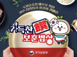 국가보훈부(장관 박민식)는 “국가유공자 예우와 보훈문화 확산을 위해 추진 중인 '가득찬(饌) 보훈밥상' 2호점에 (사)다일복지재단 산하 ‘밥퍼 나눔운동본부’가 참여하기로 하고, 오는 6일 오전 11시, 서울 동대문구 밥퍼 나눔운동본부에서 2호점 개시 행사를 개최한다”고 밝혔다.