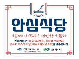 안동시 보건소장은 “안심식당으로 지정된 업소에 소비자가 안심하고 방문할 수 있도록 위생환경 등을 철저히 관리해 지역 외식경기 활성화에 기여할 수 있도록 최선을 다하겠다”라고 말했다.