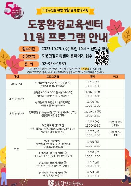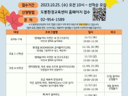 교육 신청은 교육일 전까지 도봉환경교육센터 홈페이지에서 가능하며 도봉구 거주 또는 활동하고 있는 성인 15명까지 선착순으로 접수한다.