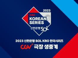 KBO(총재 허구연)와 CGV는 내일(7일) 개막하는 LG 트윈스와 KT 위즈의 2023 신한은행 SOL KBO 한국시리즈 전 경기를 전국 CGV 극장 10개 지점에서 상영하기로 하고 오늘(6일) 오후 3시부터 관람권 예매를 시작한다.