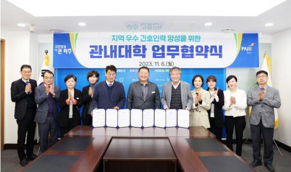 파주시는 6일 우수한 간호 인력 양성을 위해 두원공과대학 및 서영대학교와 업무협약을 체결했다.