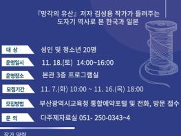 ‘망각의 유산’은 다큐멘터리로도 제작됐으며, 강의 중 함께 시청할 예정이다. 강연 후 참가자 5명에게 추첨을 통해 작가의 사인이 담긴 작가의 저서 ‘디어 부산’도 증정한다.