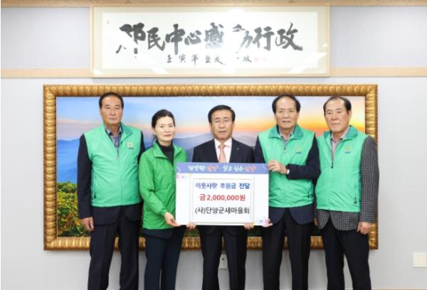 (사)단양군새마을회에서 단양군 저소득층 지원을 위해 현금 200만 원을 충북사회복지공동모금회에 기탁했다.