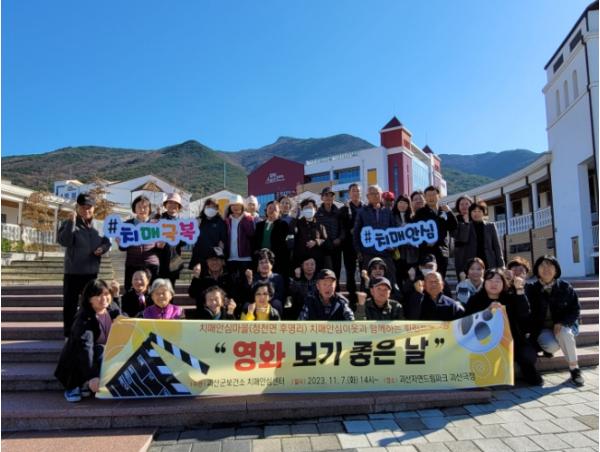충북 괴산군보건소는 지난 7일 제2호 치매안심마을로 지정된 청천면 후영리 치매안심이웃과 치매환자 및 가족을 대상으로 치매가족 힐링프로그램 ‘영화 보기 좋은 날’을 운영했다.