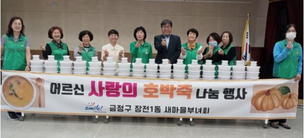 부산 금정구 장전1동 새마을부녀회는 관내 취약계층 어르신 50명에게 회원들이 정성스레 준비한 호박죽 나눔 봉사활동을 펼쳤다.