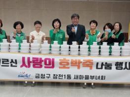 장전1동 새마을부녀회에서는 직접 끊인 호박죽과 밑반찬을 관내 취약계층 50세대에 전달했으며, 매년 삼계탕과 건강꾸러미, 김장 김치 지원 등 이웃사랑을 몸소 실천하고 있다.