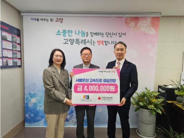 서울문산고속도로에서 지난 11월 7일 고양특례시에 취약계층을 위한 후원금 400만원을 기탁했다.