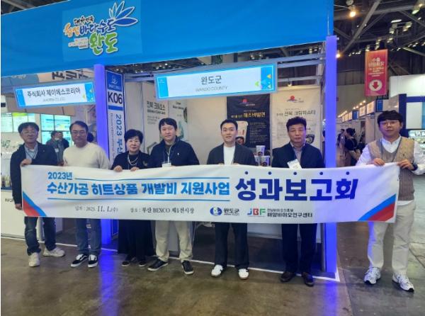 완도군은 지난 1일 부산국제수산엑스포에서 '완도군 수산 가공 히트상품 개발비 지원사업'의 최종 평가회를 갖고, 다음날 사업을 통해 개발된 제품 수출 계약식을 진행했다.