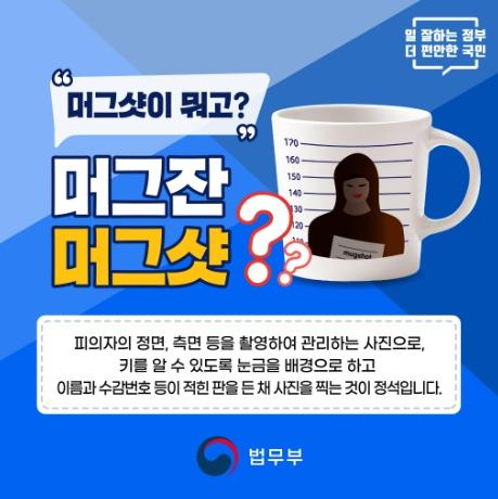 속칭 ‘머그’는 ‘얼굴’을 뜻하는데요. 18세기에 손잡이가 있는 큰 컵인 ‘머그컵’에 얼굴 부조 장식을 하던 것에서 그 유래가 시작 됐어요. 우리가 ‘머그샷’이라고 부르는 사진의 정식 명칭은 police photograph랍니다.