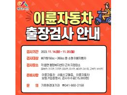 박경환 기후환경대기과장은 “먼 거리를 이동해 정기 검사를 받아야 하는 시민들의 불편함과 위험성을 해소하기 위해 진행하는 출장 검사인 만큼 이륜자동차 정기 검사 대상자분들의 많은 참여를 바란다”라고 말했다.