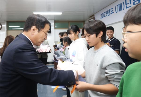 단양장학회는 올해 전국대회에서 우수한 성적을 거둔 예체능 학생들에게 격려 장학금을 지급했다.