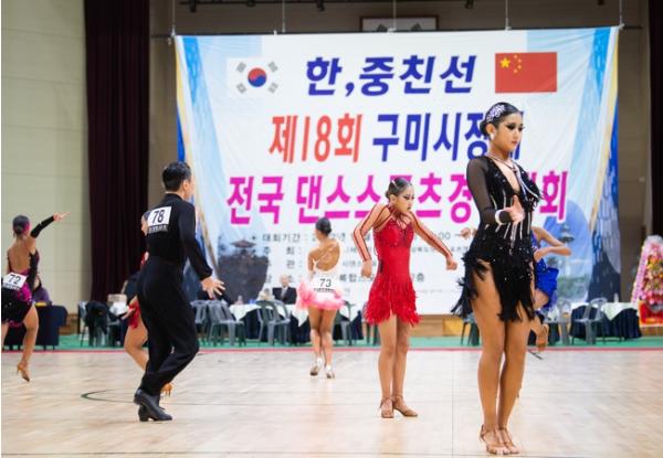구미시는 11일 복합스포츠센터에서 전국 500여 명의 프로?아마추어 댄스스포츠 선수와 임원이 참가한 가운데 '제18회 구미시장배 전국 댄스스포츠 경기대회'를 개최했다.