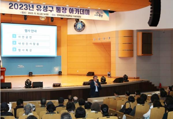 대전 유성구는 지난 10일 한국침례신학대학교 기념대강당에서 통장 540여명을 대상으로 ‘2023년 통장 아카데미’를 개최했다.