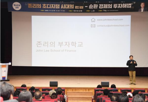 이번 강연은 ‘존리의 부자학교’의 존리 대표가 강연자로 나섰다. 혼란스러운 현시대의 순환 경제 이해를 통해 시민들이 시대 흐름을 읽고 가치 있게 살아갈 수 있는 방향을 제시해 주목받았다.