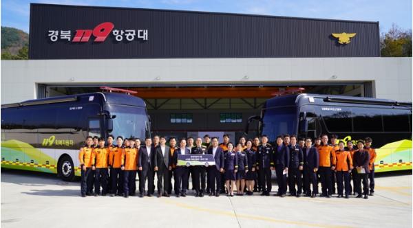 경상북도 소방본부는 지난 10일 포항시 기계면 소재 119특수대응단에서 김학홍 경북도 행정부지사, 이일 소방청 차장, 이영팔 경북소방본부장, 김걸 현대자동차그룹 사장, 김동욱 현대자동차그룹 부사장 등이 참석한 가운데 현대자동차그룹의 119회복지원차를 기증하고 전달식을 개최했다고 밝혔다.