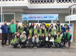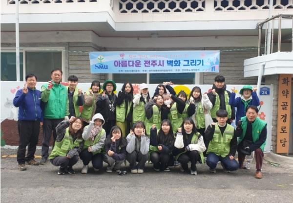 전주시대학생마을동아리 회원 30여명은 지난 11일 우수동 마을 노인정 환경개선을 위한 사업추진으로, 거리 예술을 통한 친화적인 주민 쉼터 조성 공간으로 활용토록 지원하기 위해 ‘아름다운 전주시 벽화그리기 사업’을 실시했다.