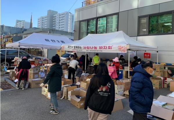 광명시 하안3동 나눔누리터는 지난 10일 동 행정복지센터 주차장에서 ‘사랑나눔 바자회’를 개최했다.