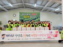 참가자들은 김치 1000㎏을 버무려 10㎏짜리 100박스에 나눠 취약계층 100가구에 전달하고 안부를 살폈다.