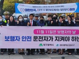 대구 달서구는 9일 아침 용산네거리 일대에서 교통안전봉사단체 40여명이 참여한'보행자의 날(11. 11.)'맞이 교통안전 캠페인을 실시했다.