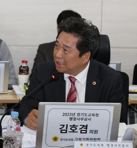경기도의회 교육기획위원회 김호겸 위원(국민의힘, 수원5)이 10일 경기도의회 제372회 정례회 중 경기도국제교육원(평택시 소재)에서 열린 평택ㆍ여주ㆍ광주하남ㆍ이천ㆍ안성교육지원청을 대상으로 한 경기도교육청 행정사무감사에서 주민참여예산제 시행 시 다양한 교육수요자들의 의견청취로 제도의 완성도를 높여야 한다는 의견을 개진했다.