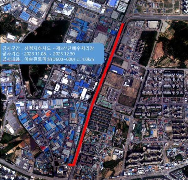시는 북부BIT일반산업단지, 테크노파크일반산업단지,도시첨단산업단지, 성거일반산업단지 조성을 추진하고 있다. 이에 따라 신규 산업단지에서 발생하는 폐수를 천안 제3일반산업단지 폐수처리장으로 유입시키기 위해 관로를 매설한다.