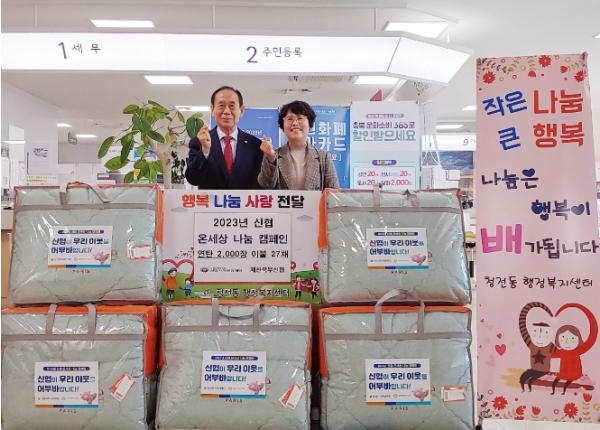 이재연 청전동장은 “어려운 이웃을 먼저 생각하고 필요한 물품을 지원해 준 제천북부신협에 감사드리며, 추운 겨울을 준비하는 이웃들에게 큰 도움이 될 것이다.”라고 말했다.