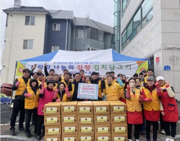 온양라이온스클럽이 지난 11일 지역 내 소외계층에 전달해 달라며 온양6동 행복키움추진단에 김장 김치 10kg 40상자를 기부했다.