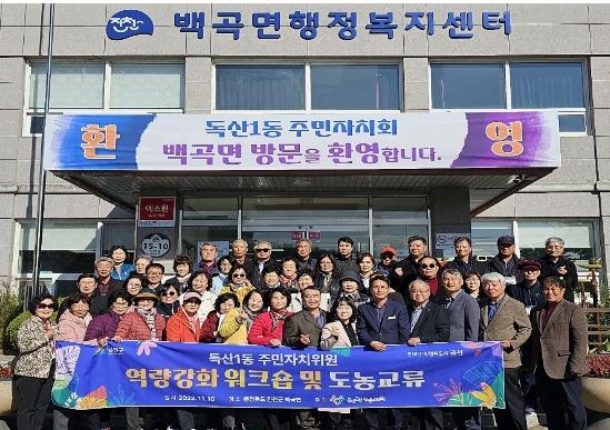 이번 행사는 백곡면 주민자치회와 사업 성과를 공유하고, 도농교류를 통한 상생발전을 도모하기 위해 마련됐다. 양측 주민자치회장 및 위원, 독산1동장, 백곡면장 등 총 70여 명이 참석했다.