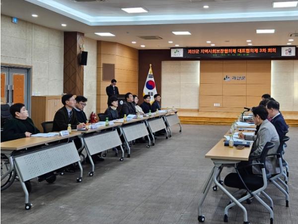 충북 괴산군지역사회보장협의체 대표협의체가 지난 13일 괴산군청 3층 대회의실에서 대표협의체 위원 16명이 참석한 가운데 ‘2023년 제3회 괴산군지역사회보장협의체 대표협의체 회의’를 개최했다.