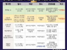 경기성남교육도서관(관장 여재구)이 다음달 14일까지 도서관에서 유아와 어린이를 대상으로 공연마당 등 ‘연말 특별행사’를 운영한다.