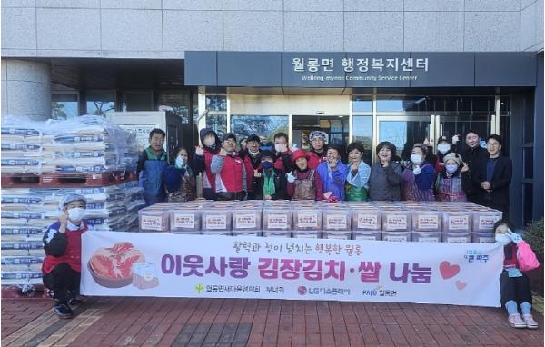 파주시 월롱면 새마을협의회와 새마을부녀회는 10일 월롱면 행정복지센터에서, 어려운 이웃과 온정을 나누기 위해 엘지(LG)디스플레이와 함께 하는 '이웃사랑 김장김치?쌀 나눔' 행사를 개최했다.
