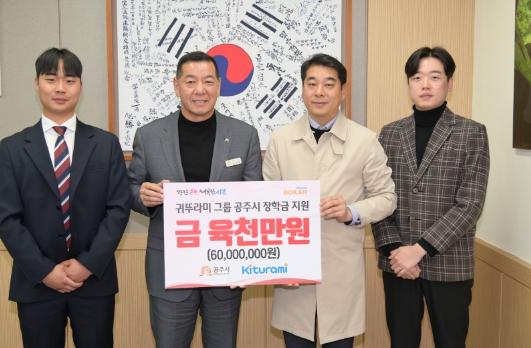 귀뚜라미그룹은 지난 13일 저소득 가정을 위해 사용해 달라며 장학금 6천만원을 공주시에 기탁했다.